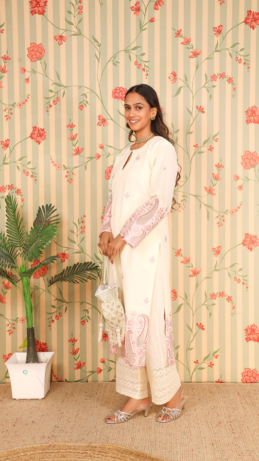 Offwhite Pink Kurta Set with Pants