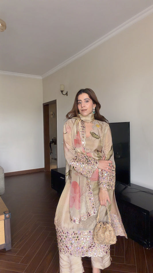 Beige Tissue Suit Set