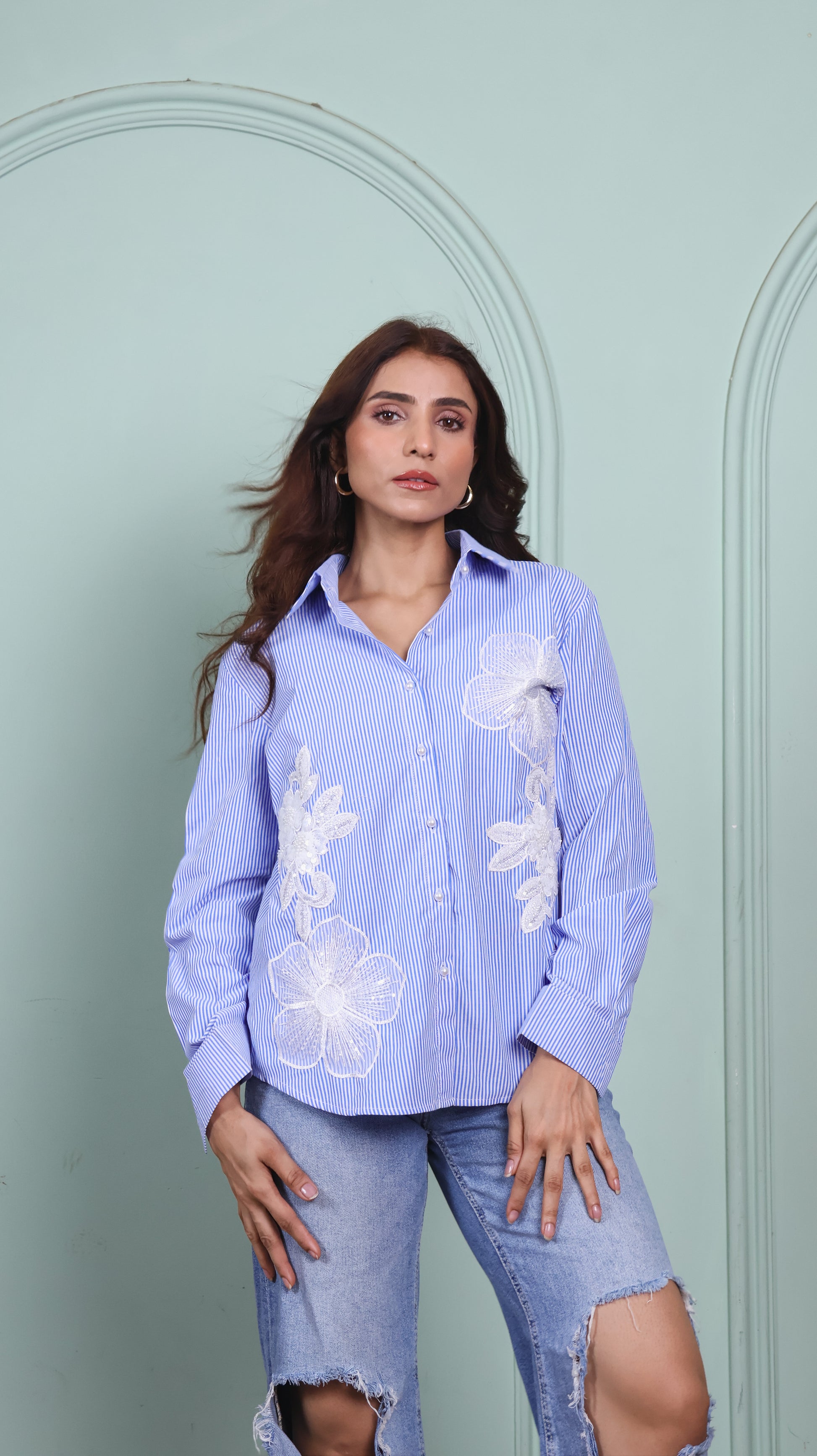 Elevate Your Wardrobe With The Allurearmoire Women Premium Patchwork Blue Striped Cotton Shirt. Crafted From Soft, Breathable Cotton, This Shirt Features A Modern Patchwork Design And Timeless Blue Stripes For A Chic, Contemporary Look. Perfect For Casual Outings Or Office Wear, It Offers Both Comfort And Style In One Versatile Piece. A Must-Have For Every Fashion-Forward Woman.