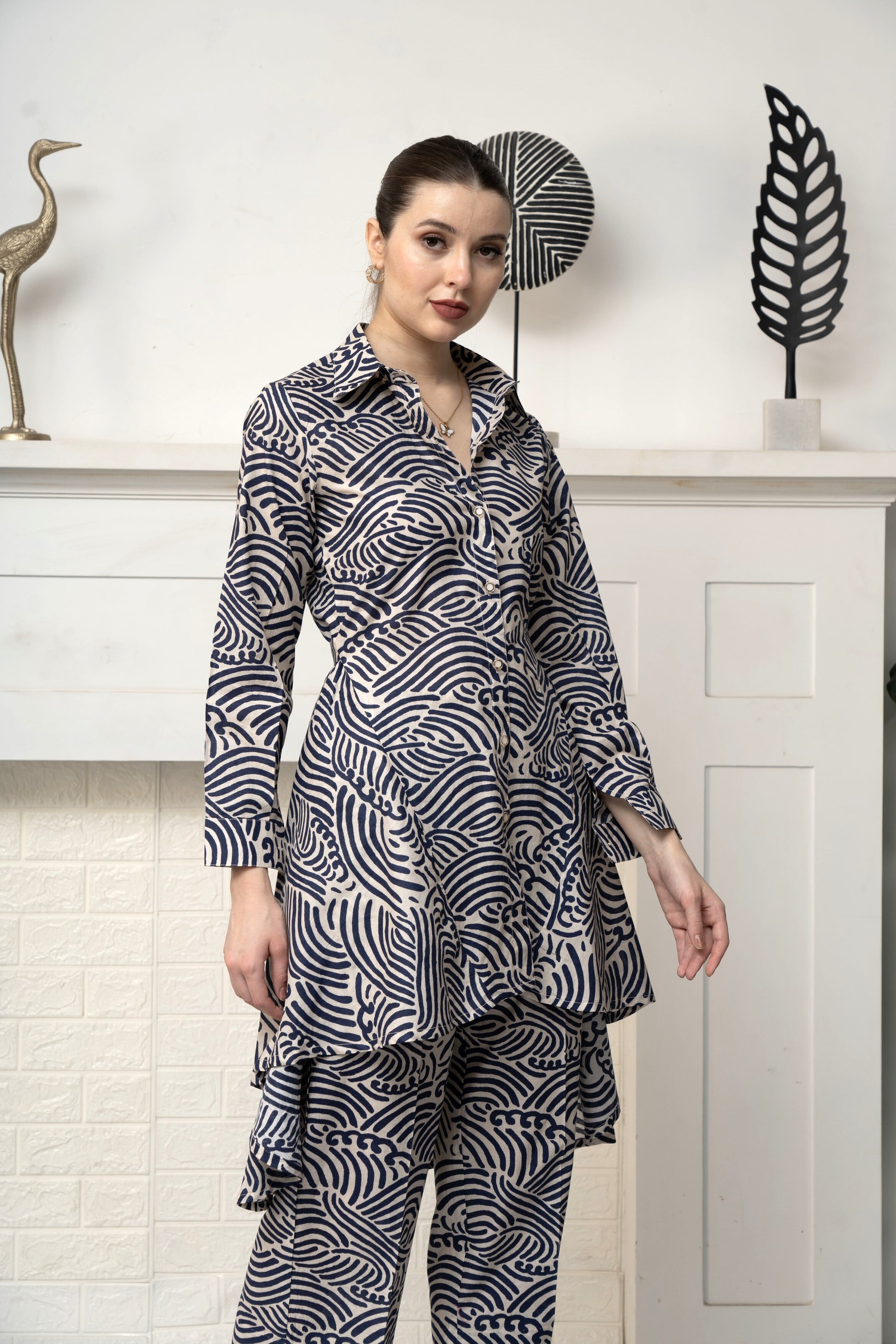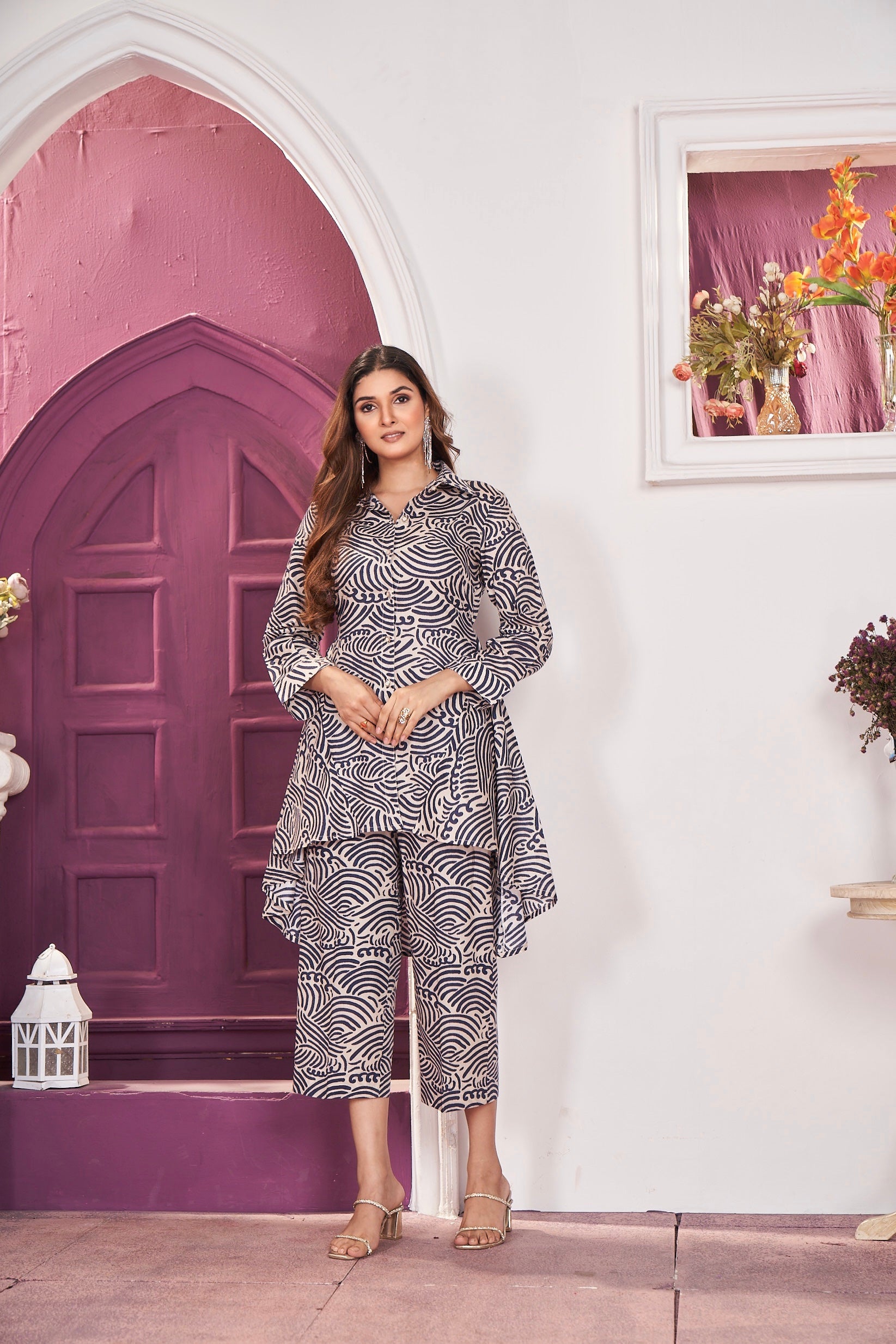 Introducing our Cotton Cobalt Blue Co-ord Set , a stylish two-piece ensemble featuring pants and a shirt. Crafted from skin-friendly colors, this set offers a minimalist yet elegant look that is an absolute must-have in any wardrobe. With its quarter sleeve length and comfortable design, it ensures easy wear and superb comfort. Perfect for any occasion, it blends sophistication with effortless style, making it a versatile choice for both casual outings and more formal settings.
