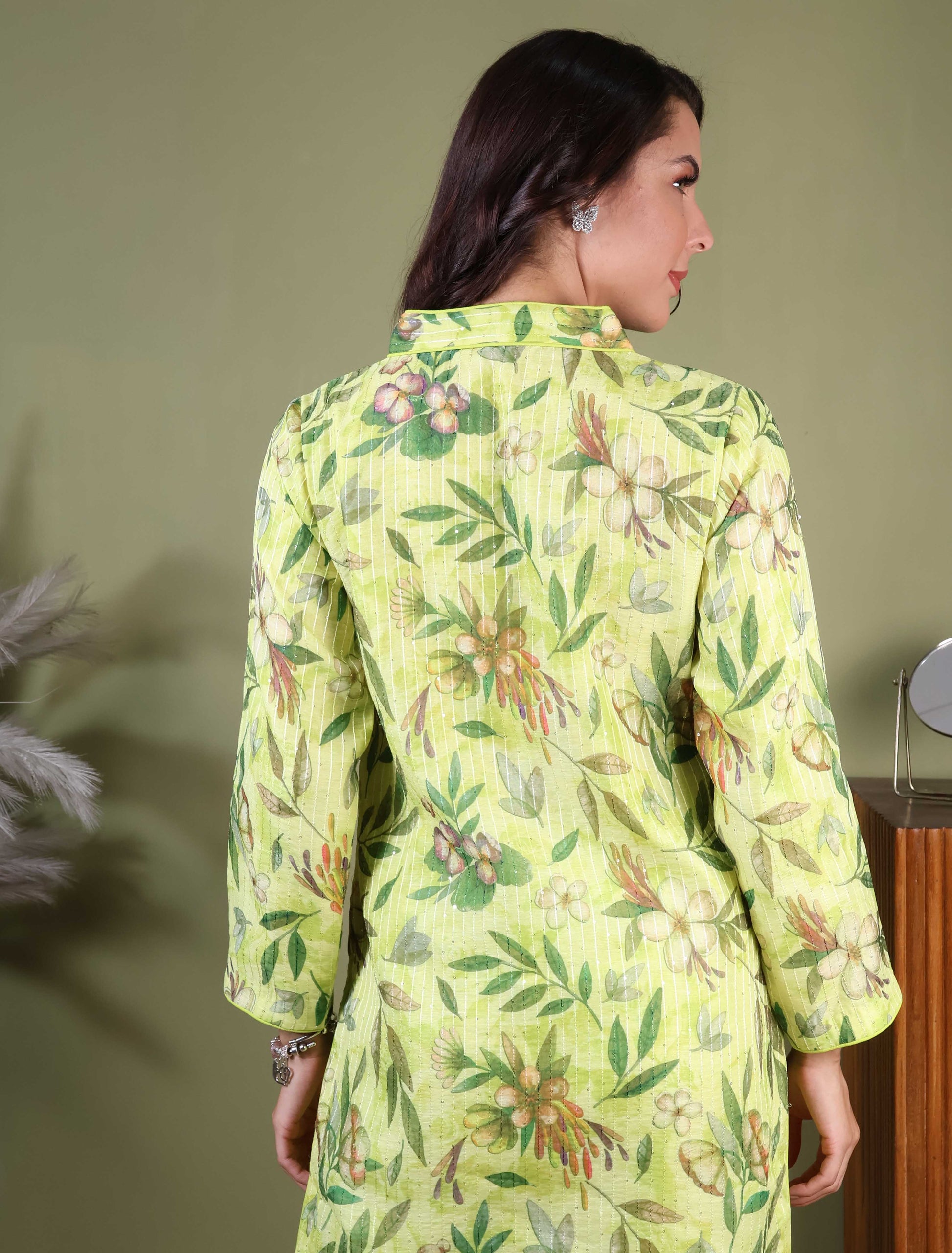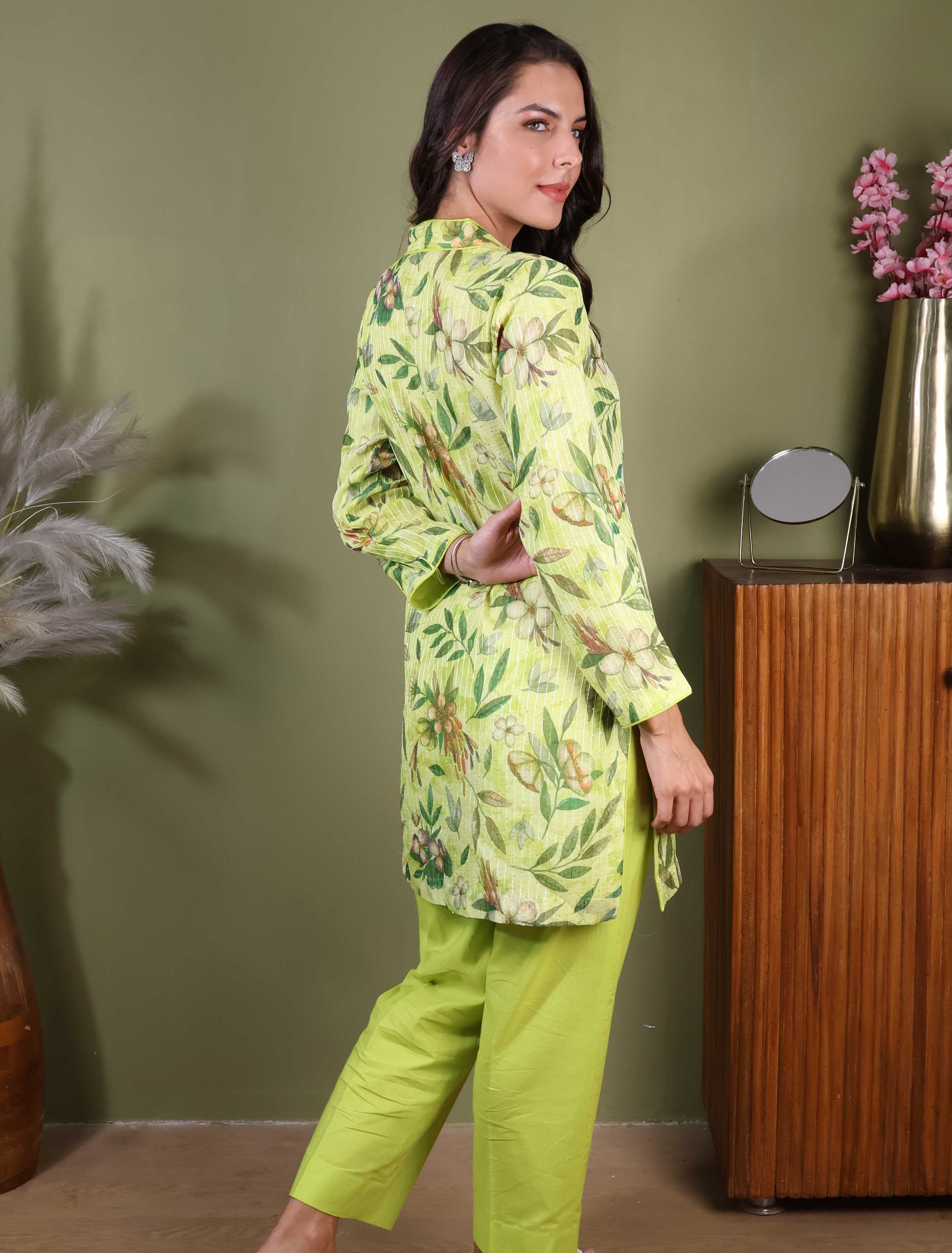Chanderi pastel green kurta with cotton pants sounds like a beautiful and elegant choice! Chanderi fabric is known for its lightweight, airy texture and often has a subtle sheen that adds a touch of sophistication. The pastel green color is refreshing and perfect for a variety of occasions. The combination of a Chanderi kurta with cotton pants strikes a nice balance between traditional and contemporary styles. The kurta will likely have intricate detailing or embroidery, while the cotton pants will keep the outfit comfortable and easy to wear.