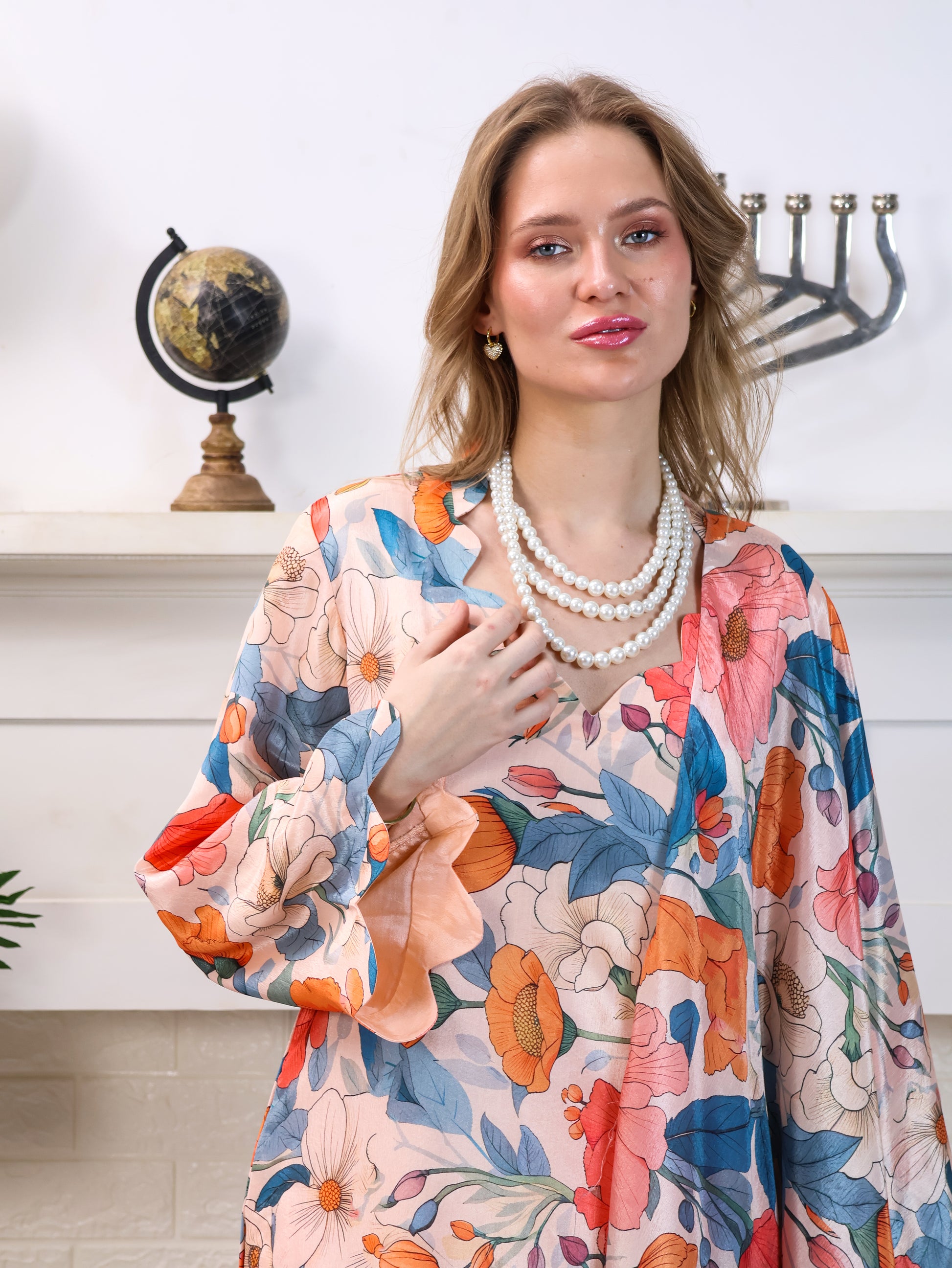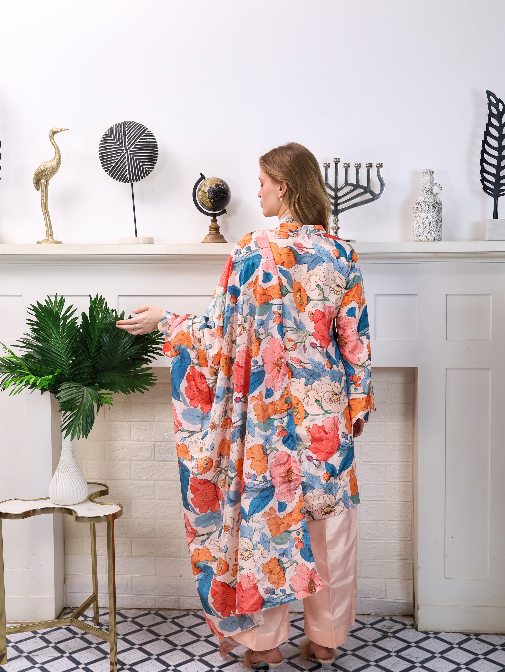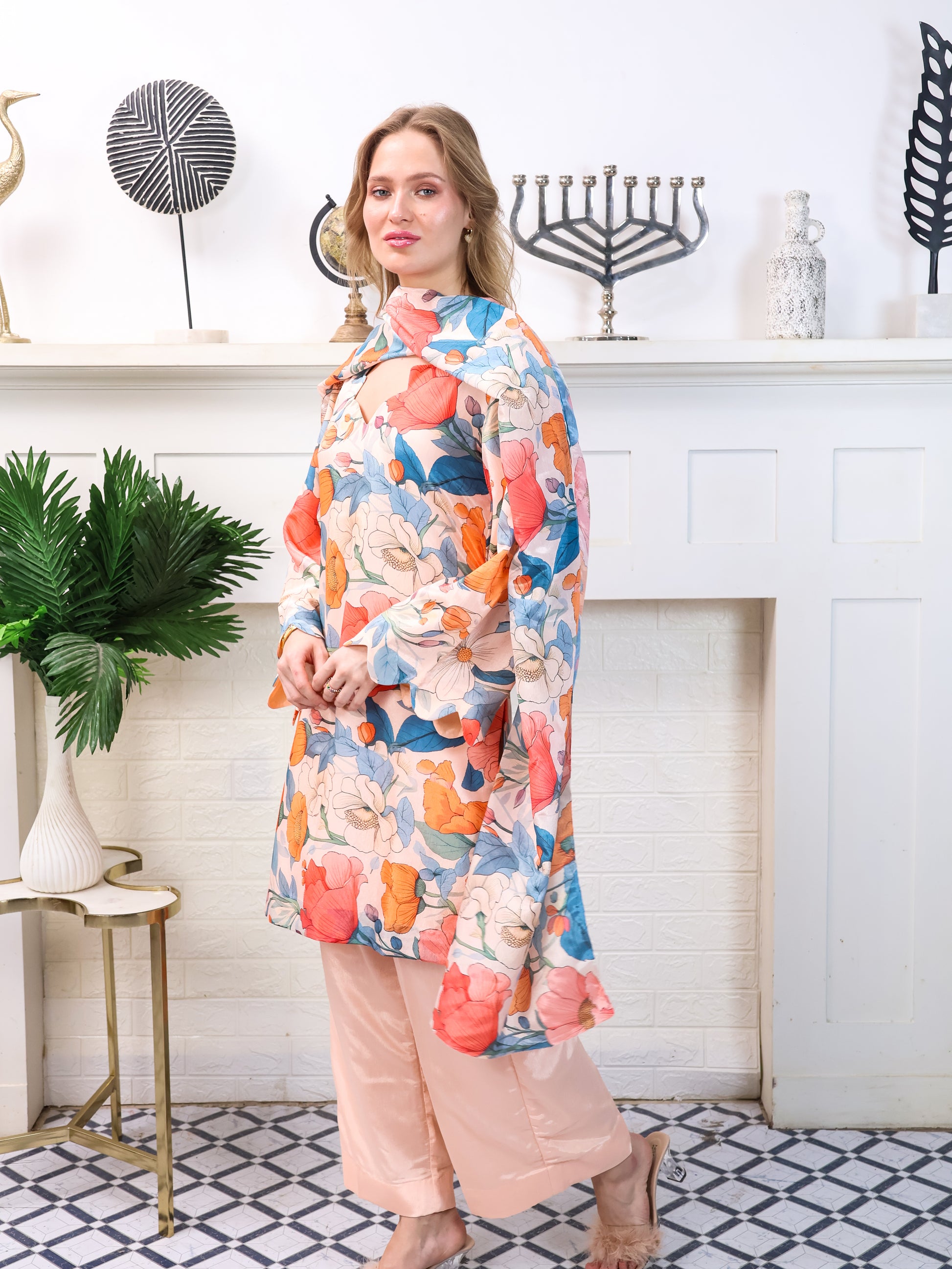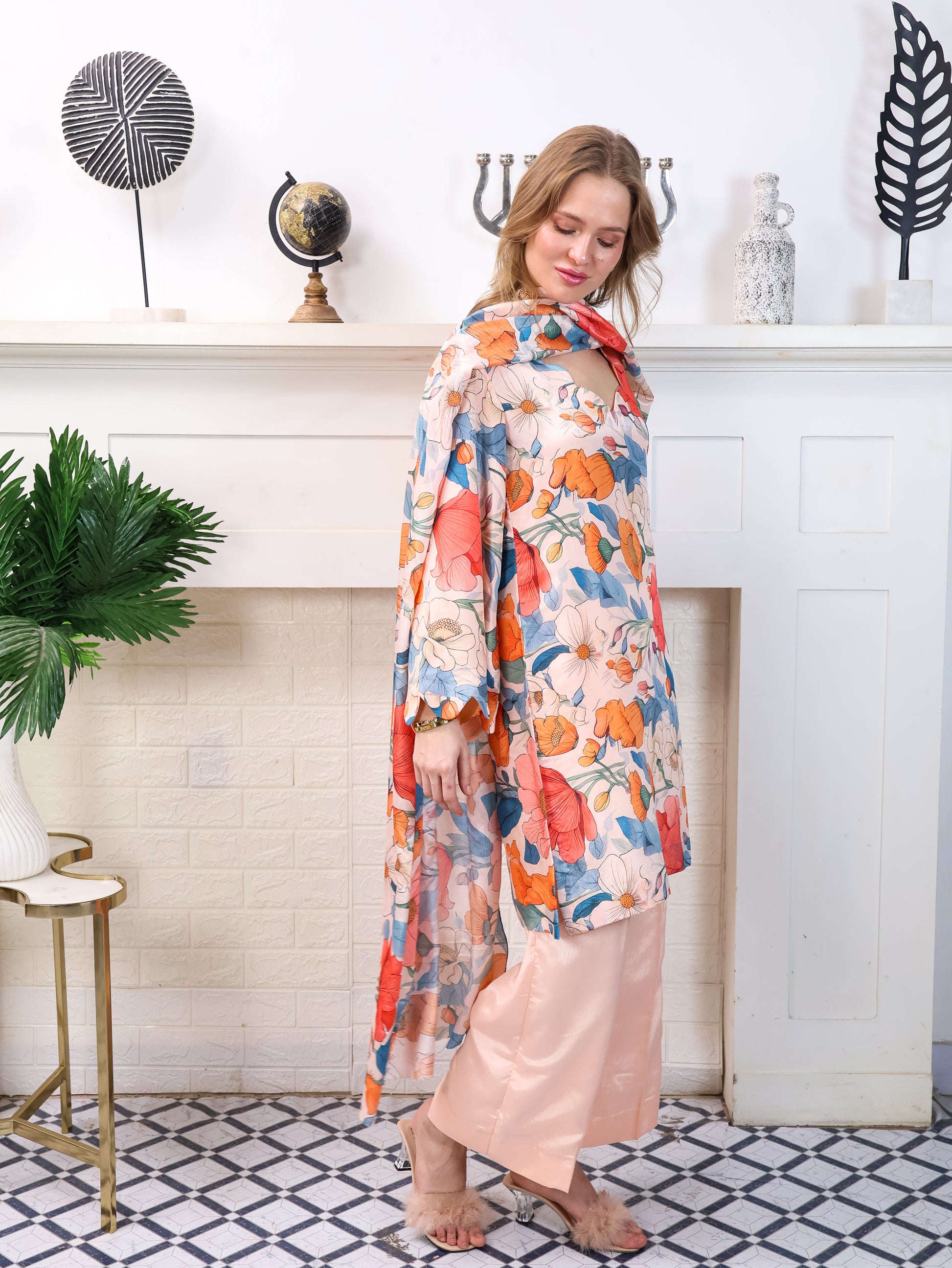 This Peach Floral Chinon-Chiffon Suit Set features a delicate floral print on luxurious chinon-chiffon fabric. The soft, flowy material offers an elegant drape, while the vibrant pink hues add a touch of femininity and charm. Perfect for festive occasions or evening events, this suit set combines grace and comfort effortlessly.