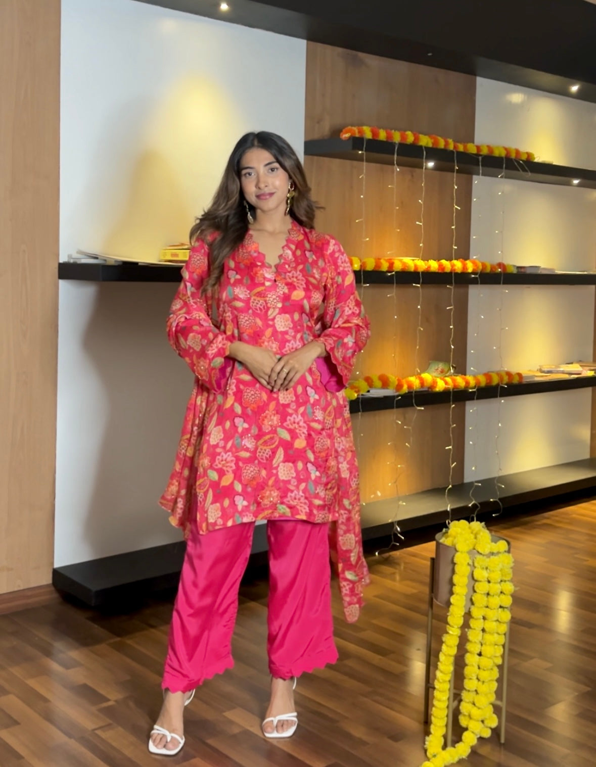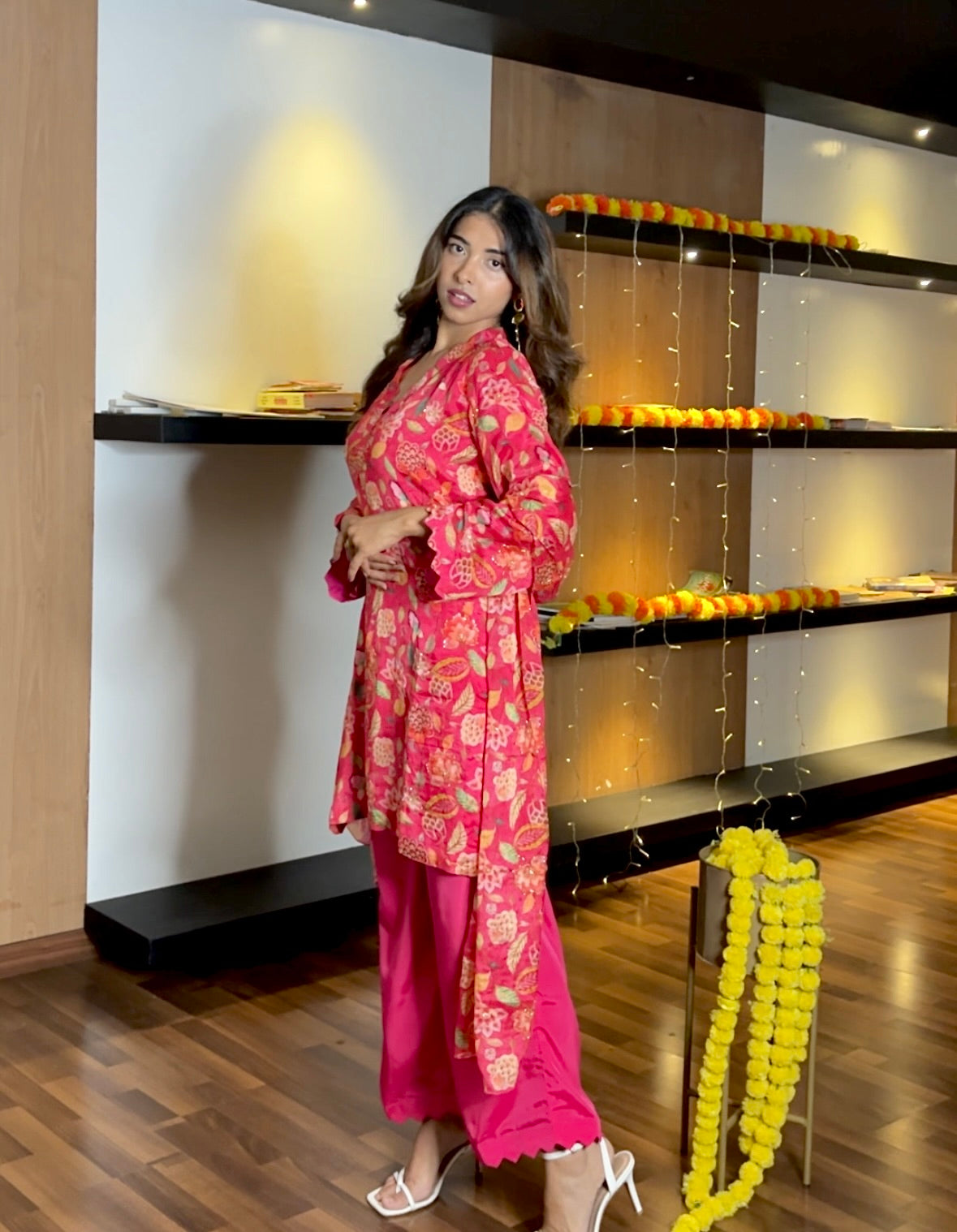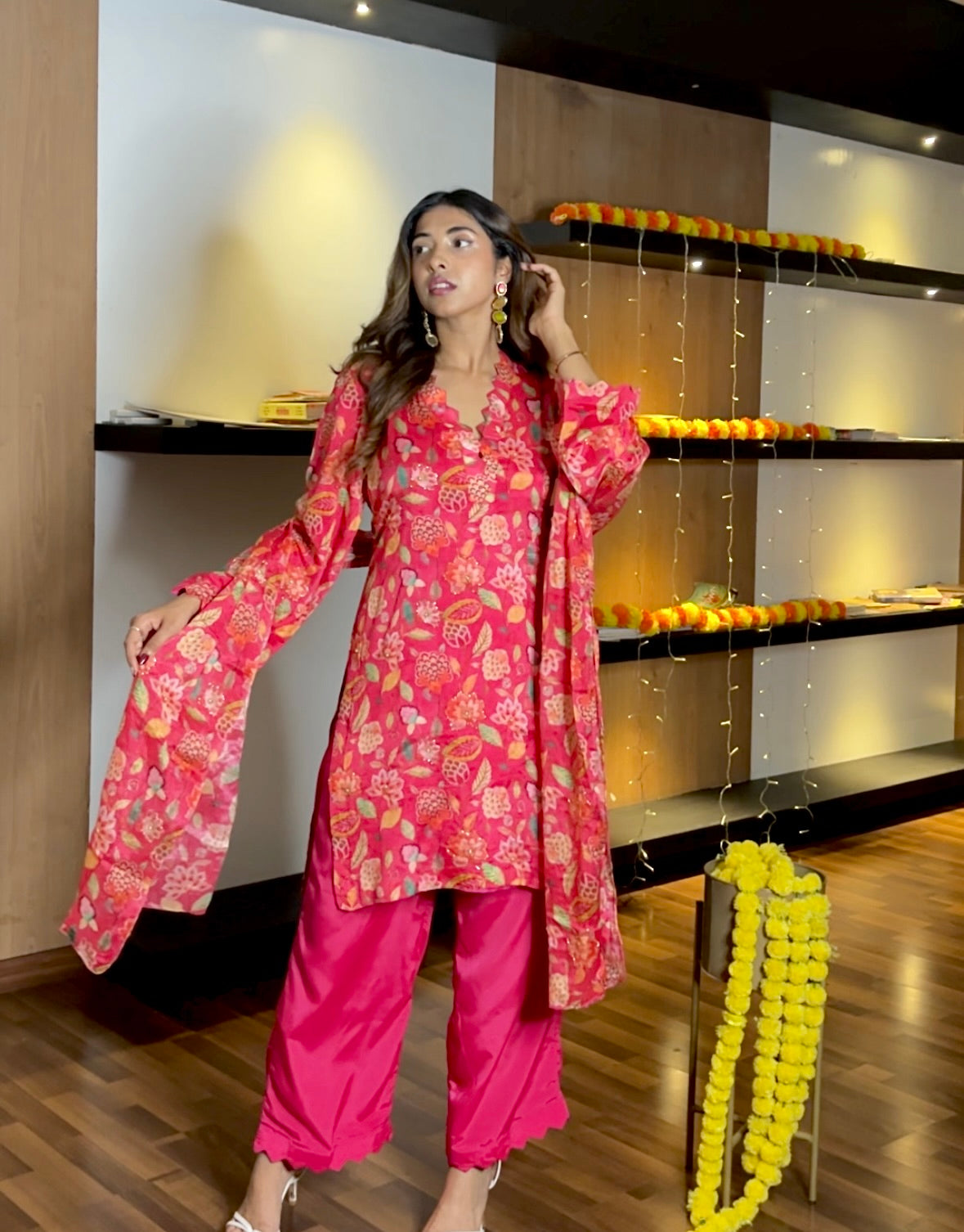 Pink Chinon suit set