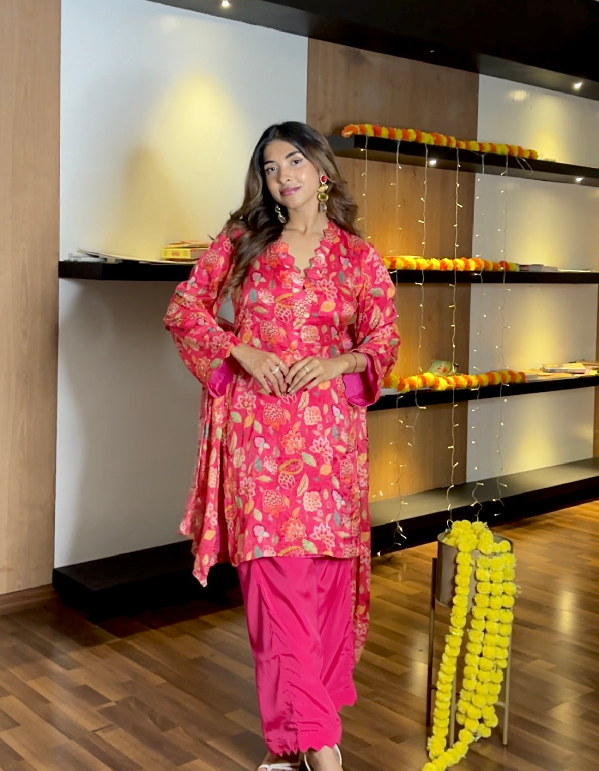 This Pink Chinon suit set exudes elegance and grace. Crafted from soft, luxurious fabric, it features delicate detailing that enhances its charm. The suit is designed with a flattering silhouette and intricate embellishments, making it perfect for special occasions. Paired with tailored pants, this ensemble strikes the perfect balance between tradition and contemporary style, ensuring you stand out beautifully.