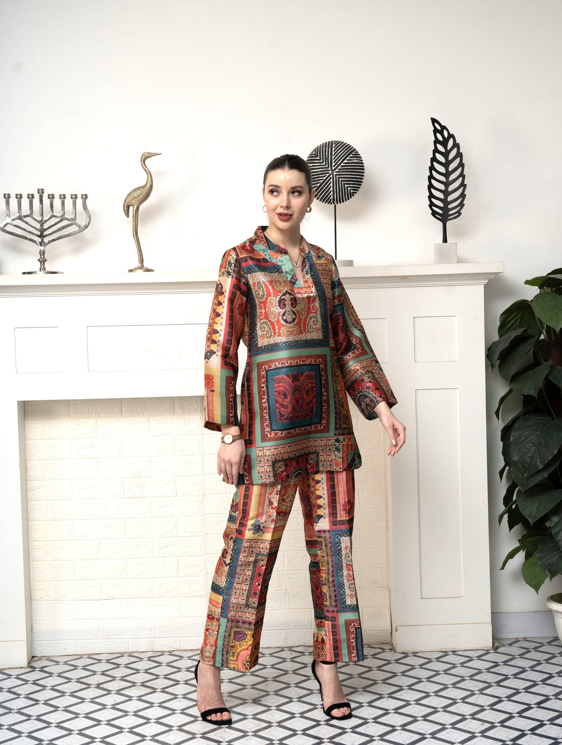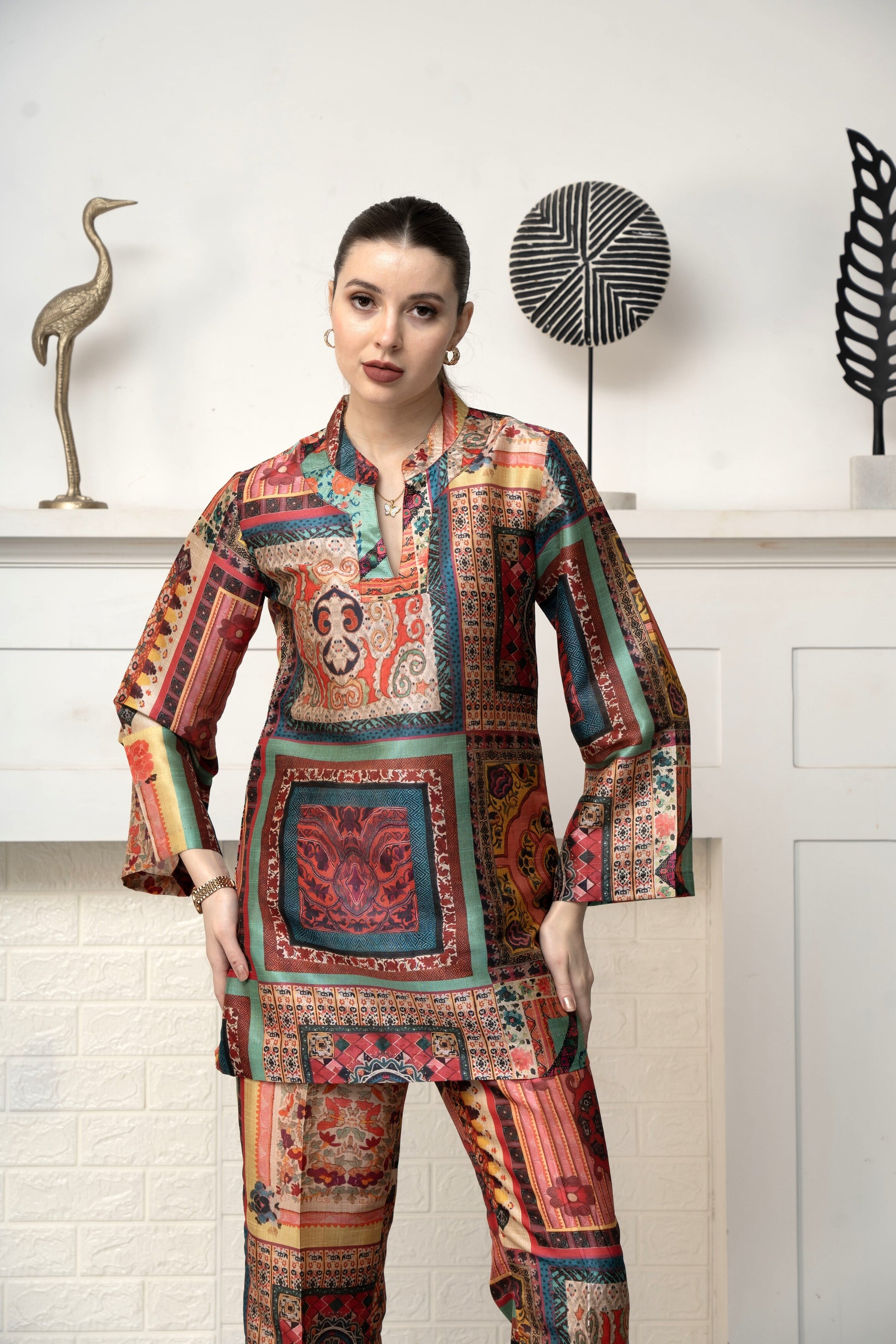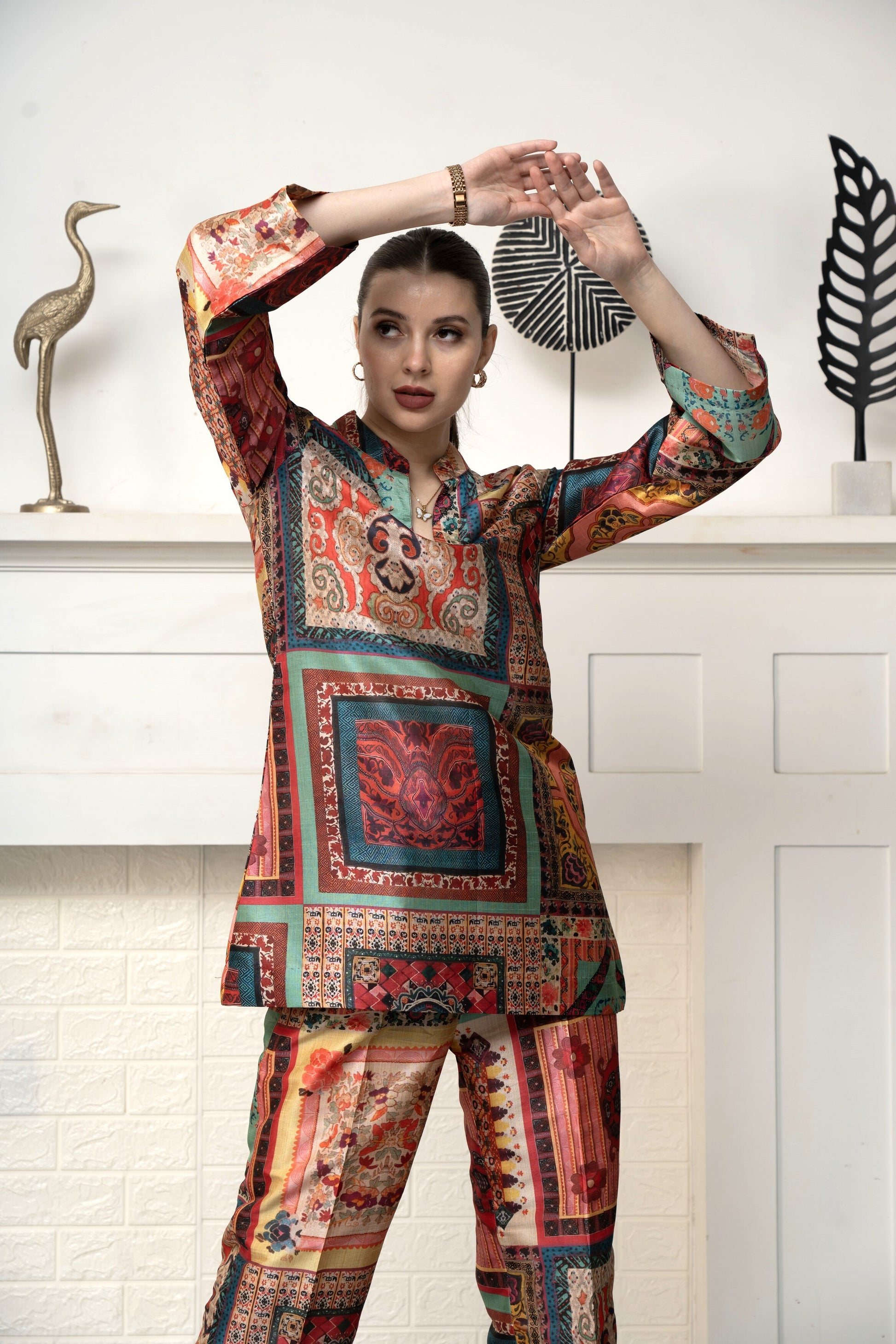 Step out in style with our Printed Poly Silk Co-ord Set , featuring straight pants and a short kurta adorned in a captivating digital print. This ensemble is ideal for a leisurely day of shopping, offering both comfort and chic sophistication. Perfectly curated for a stylish outing, it ensures you look and feel your best throughout the day.