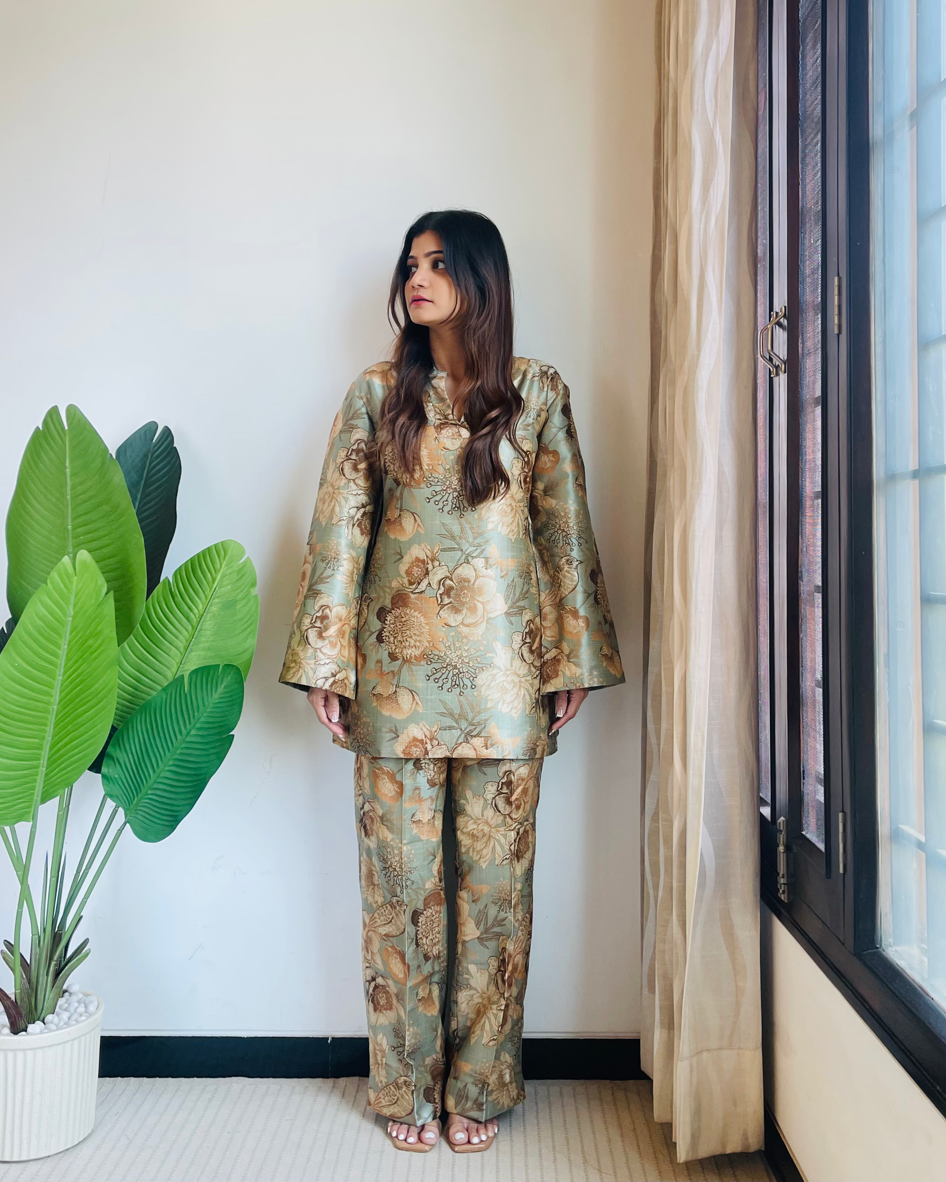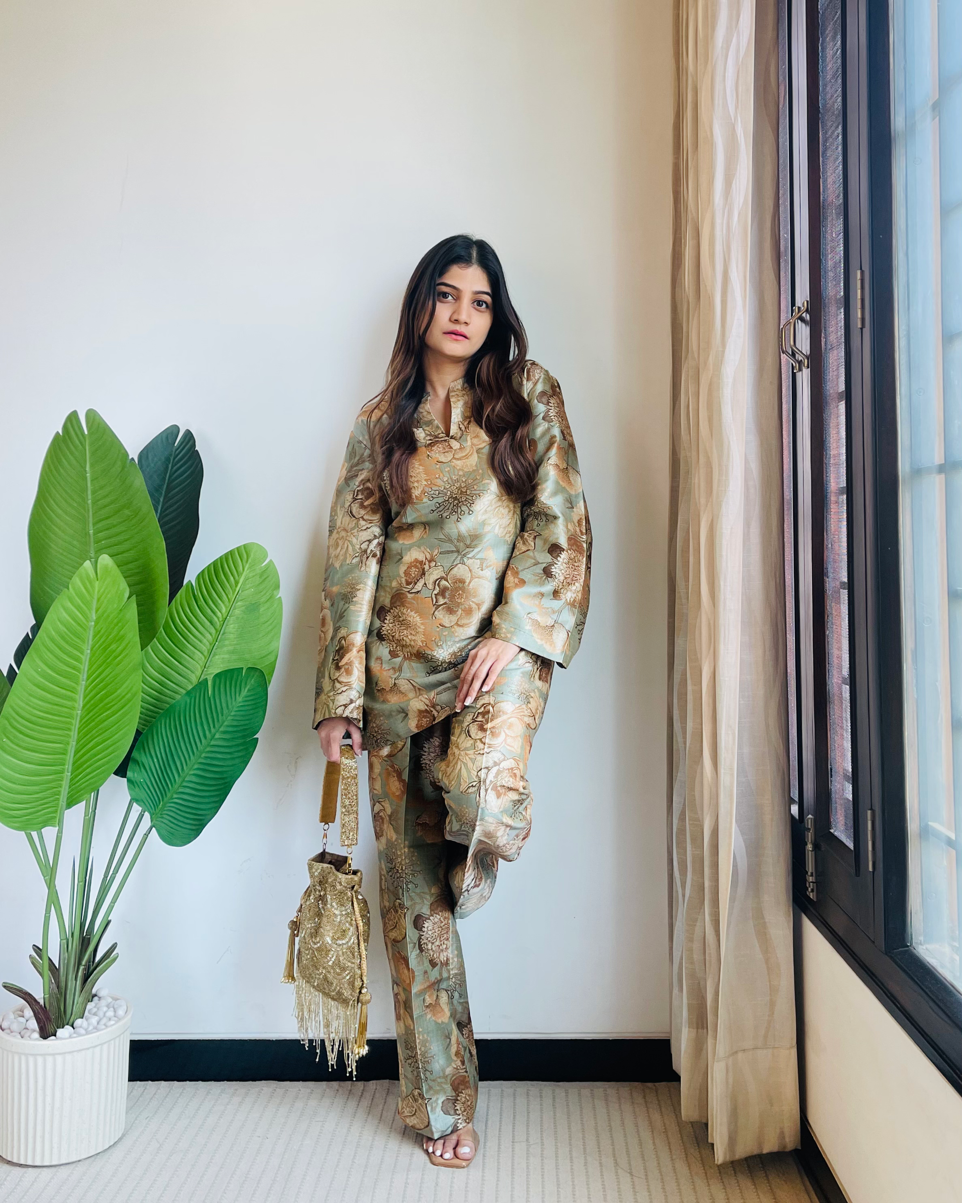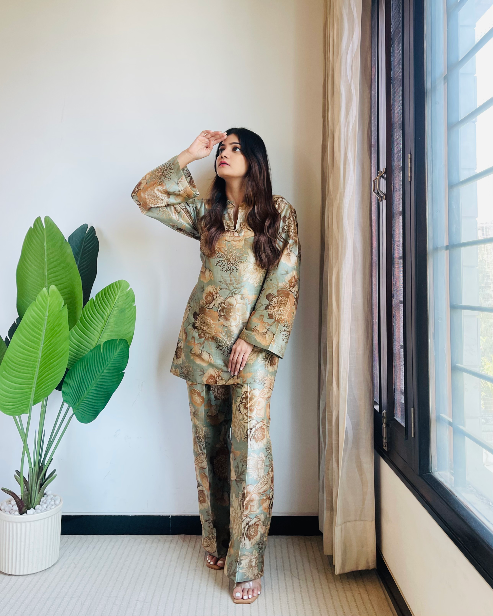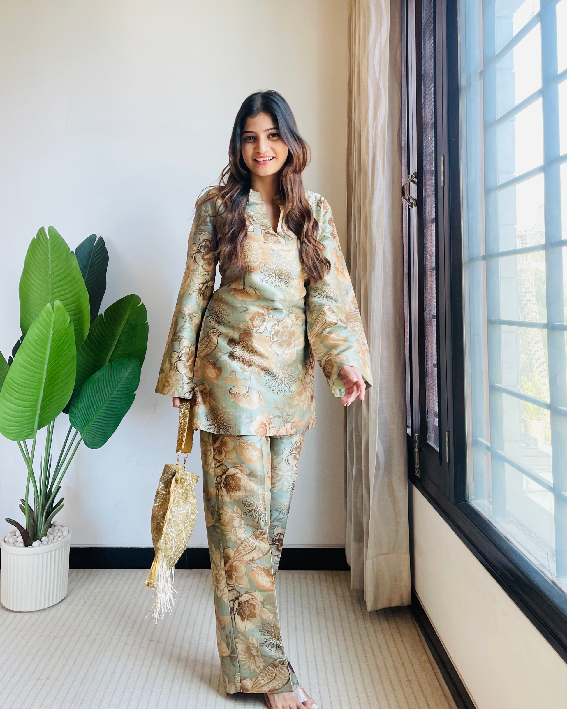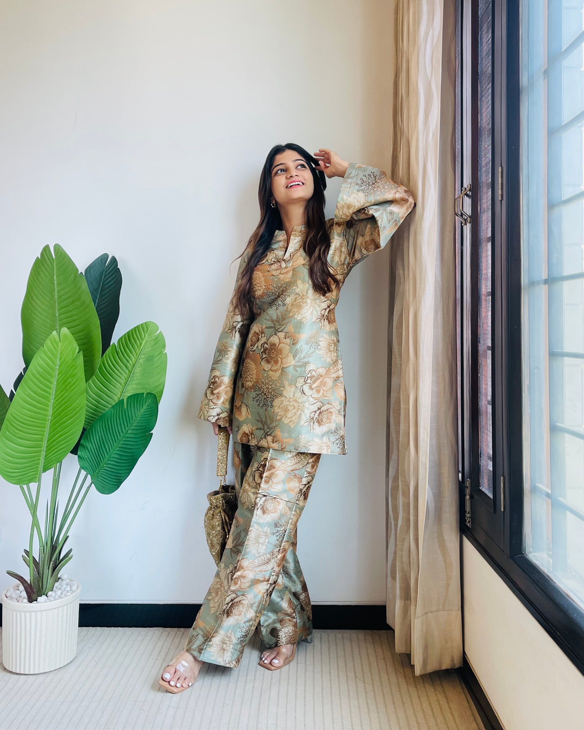 Step out in style with our Printed Poly Silk Co-ord Set , featuring straight pants and a short kurta adorned in a captivating digital print. This ensemble is ideal for a leisurely day of shopping, offering both comfort and chic sophistication. Perfectly curated for a stylish outing, it ensures you look and feel your best throughout the day.